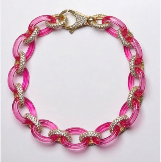 Bracciale Groumette Glass Fucsia Zirconi Bianchi Rodio Giallo