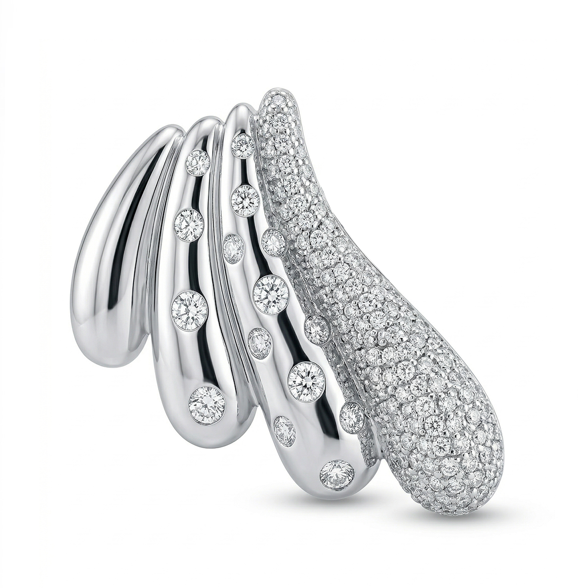 Coppia Orecchini 4 Ali Zirconi Bianchi Rodio Bianco