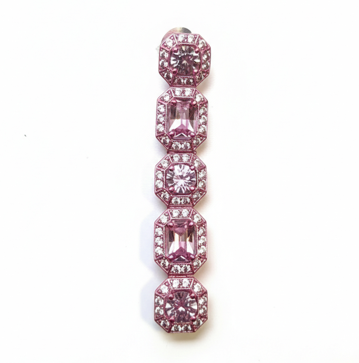 Coppia Orecchini 5 Zirconi Rosa Rodio Rosa