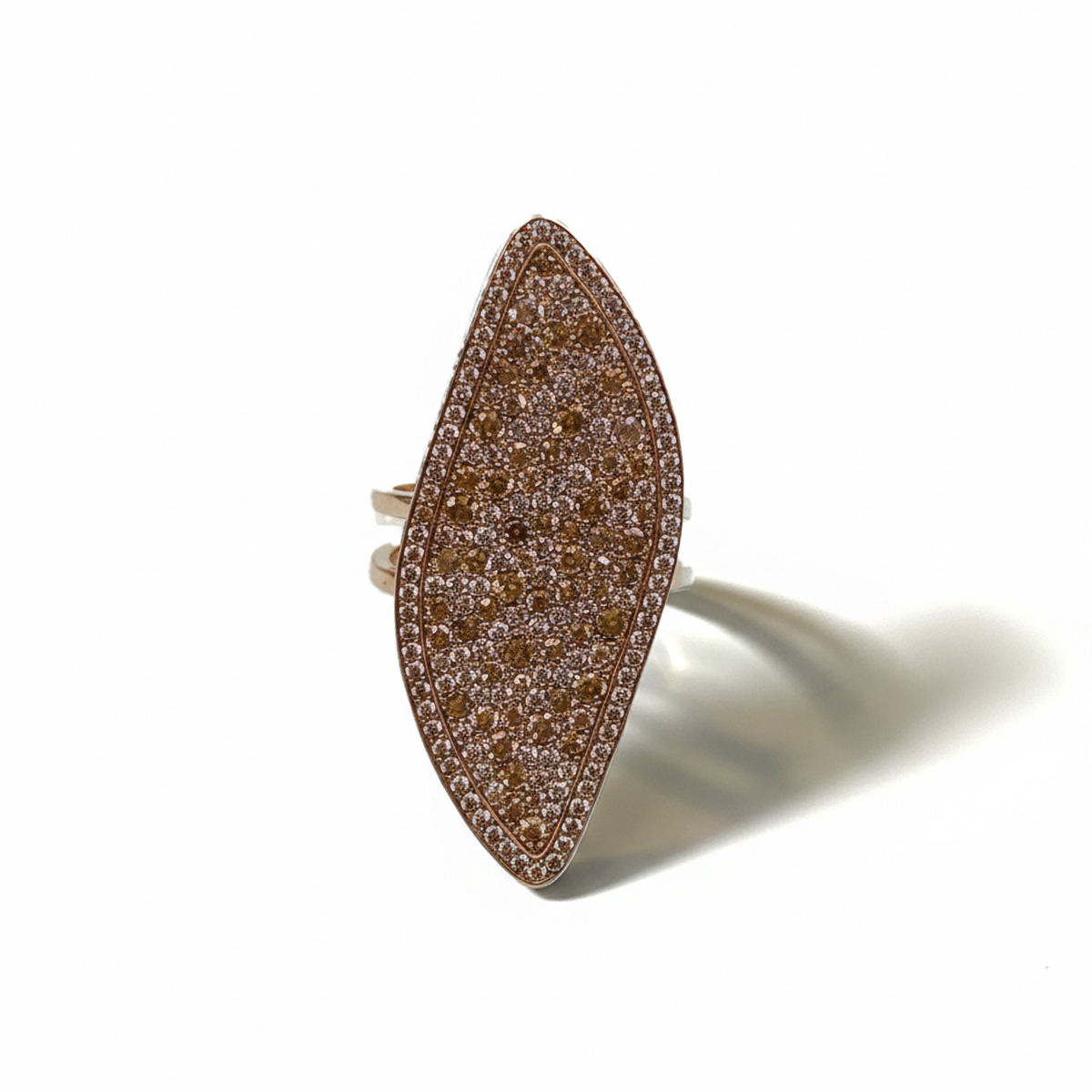 Anello Foglia Big Zirconi Champagne Rodio Rosa