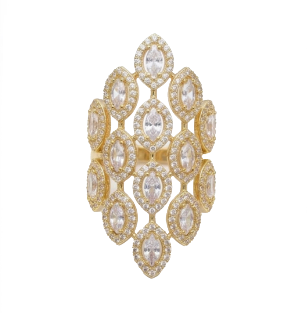 Anello Damasco Zirconi Bianchi Rodio Giallo